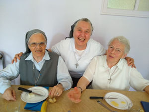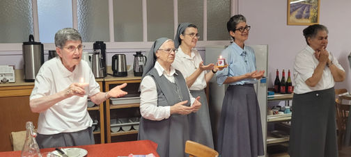 Irmãs jubilares de diversas regiões celebraram seus jubileus de Consagração: Ir. Yvonne, Ir. Marie Thérèse MOINIER e Ir. Brigitte Marie (da região França-Espanha), Ir. Cristina Fitzgerald (da região Inglaterra-Irlanda) e Ir. Marizete (da região Brasil).