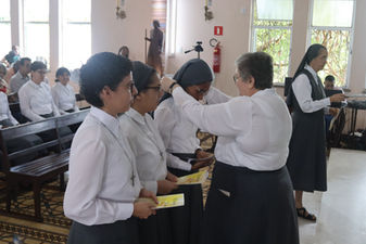 O momento da Celebração dos Votos Temporários, realmente foi lindo! Meu coração pulsava cheio de alegria e gratidão. Ver minha família, as Irmãs que estavam presentes representando cada Comunidade, amigos(as), pessoas próximas que estiveram comigo no início da caminhada, todos reunidos para participar daquele momento, que Deus mesmo havia preparado... realmente foi muito emocionante!